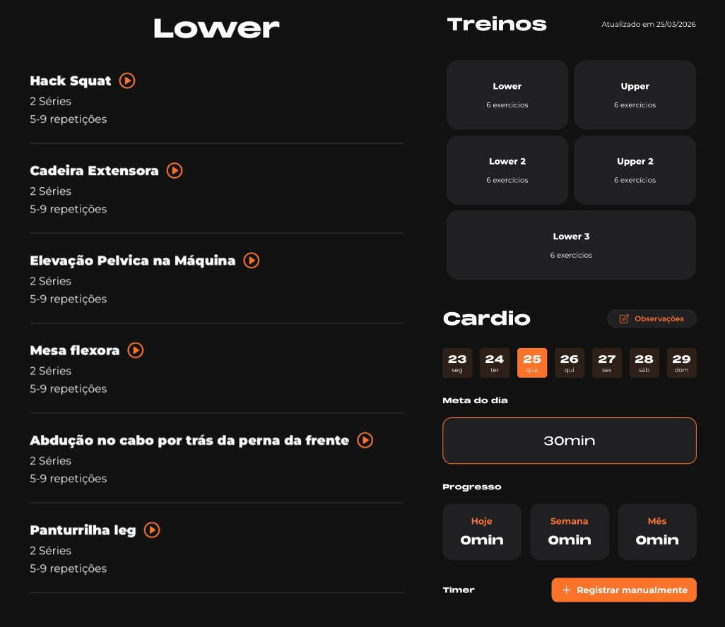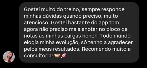 Onde entrego seu treino individualizado, com vídeos dos exercícios, analiso seu rendimento, melhorando os seus resultados.